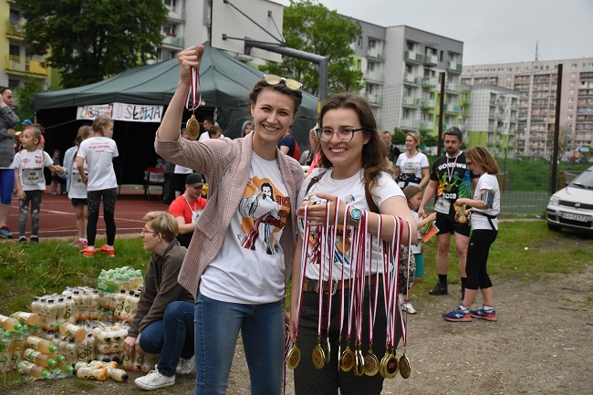 W niedzielę 19 maja br. wielu naszych parafian, a także osób z innych parafii i miast, pokonało dwuipółkilometrową trasę biegnącą w miechowickim lesie. Zawodnikom niestraszne były czarne chmury zbierające się nad boiskiem Dołek. Najpierw wystartowała grupa zawodników indywidualnych (bieg i marsz nordic-walking), którzy suchą nogą dotarli na metę, a po nich drużyny rodzinne, które wspólnie z organizatorami zdecydowały, że chcą wyruszyć pomimo lejącego się już wtedy deszczu. Przemoczone, ale uśmiechnięte dotarły do mety. W pakietach startowych wszyscy uczestnicy otrzymali karteczki z zadaniami, w jaki sposób mogą w swoim życiu zabiegać o słowa. Opłaty startowe zostały w całości przeznaczone na leczenie i rehabilitację Kamila Lisickiego z Bytomia. W czasie trwania imprezy udało się zebrać kwotę 2068 zł.