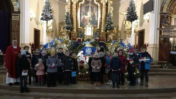 W święto Świętych Młodzianków czyli 28 grudnia zeszłego roku tradycyjnie o godz. 9:00 została odprawiona Msza święta w intencji dzieci i młodzieży naszej parafii. Po niej ci, którzy przez cały Adwent dzielnie uczęszczali na Roraty, zostali obdarowani drobnymi upominkami. Tu warto wspomnieć, że w czasie Rorat dzieci - choć nie tylko one - miały okazję przemierzyć wraz z Maryją i Józefem pod czujnym okiem Archanioła Gabriela drogę z Nazaretu do Betlejem, a na tej trasie odwiedzić różne znane z Biblii miejsca, m. in. Betanię, Kafarnaum, Jezioro Galilejskie, Jerozolimę, Górę Tabor i Górę Przemienienia. Było prawie jak w Ziemi Świętej, bowiem oprócz informacji i ciekawostek o danym miejscu wiele z nich można było obejrzeć na zdjęciach.